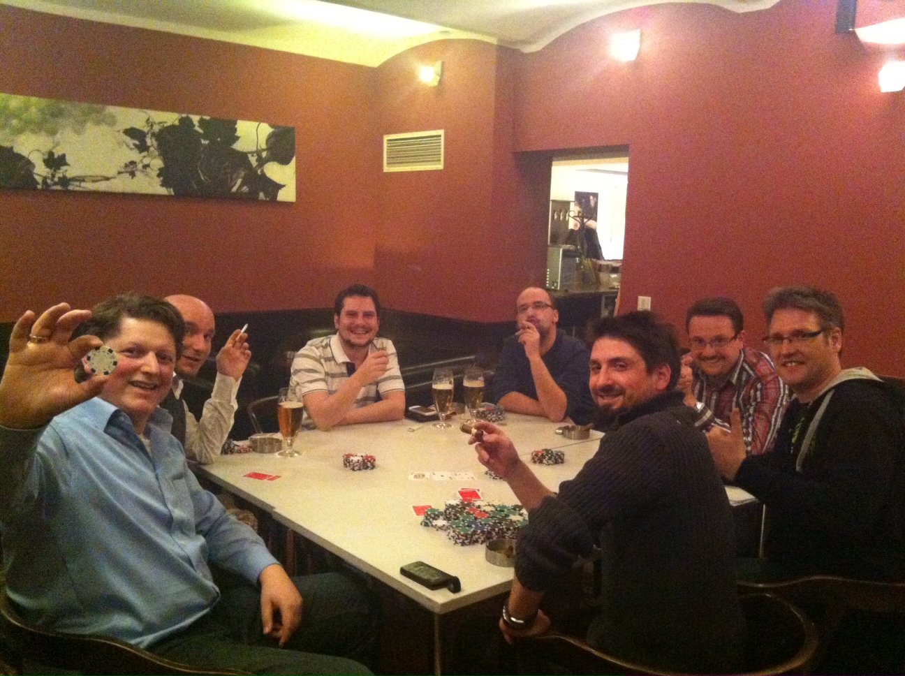 Angenehm, das neue Mobiliar. Tische, die gleich hoch sind, und quadratisch praktisch dazu. Dank gilt dem diesmal abwesenden Obmann, der erfolgreich auf die langjährige Vereinsgeschichte pochend dem Sandwirth den Unmut der Pokeranten authentisch vermitteln konnte.